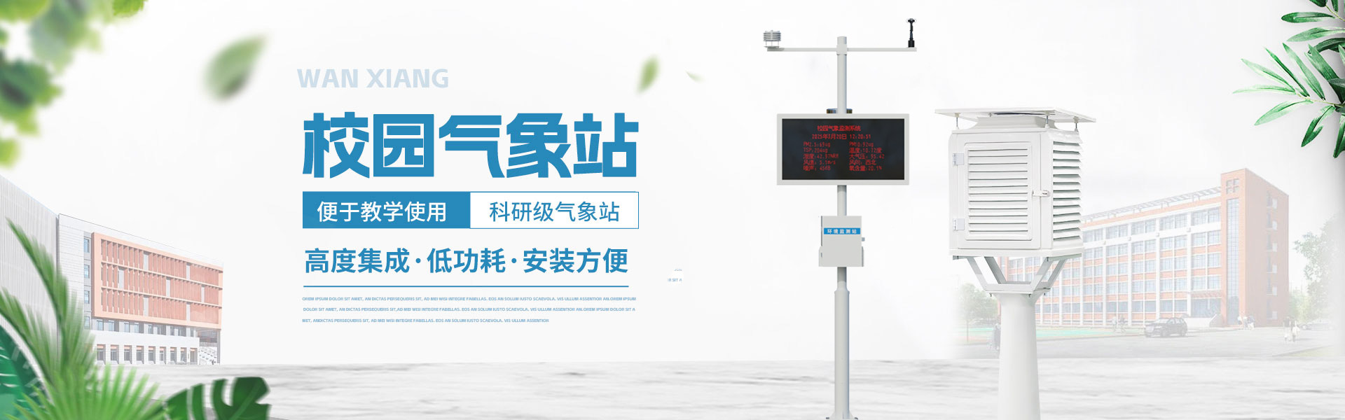 山東萬(wàn)象環(huán)境科技有限公司官網(wǎng)主要產(chǎn)品有防爆氣象站,校園氣象站,農(nóng)業(yè)氣象站,負(fù)氧離子監(jiān)測(cè)站,超聲波氣象站,歡迎咨詢13276362033!